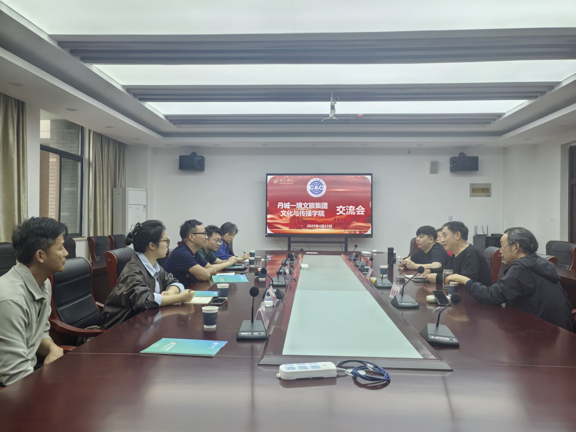 4月22日,丹城一境文旅集团/未晞园副总裁刘坡、品宣部经理吴义举等一行,来yl7703永利官网商讨文旅短剧合作。院党委书记路善全、产教融合中心主任许昱颢、办公室薛骏、戏剧影视文学专业教师陈庆泓、唐莉等参加。