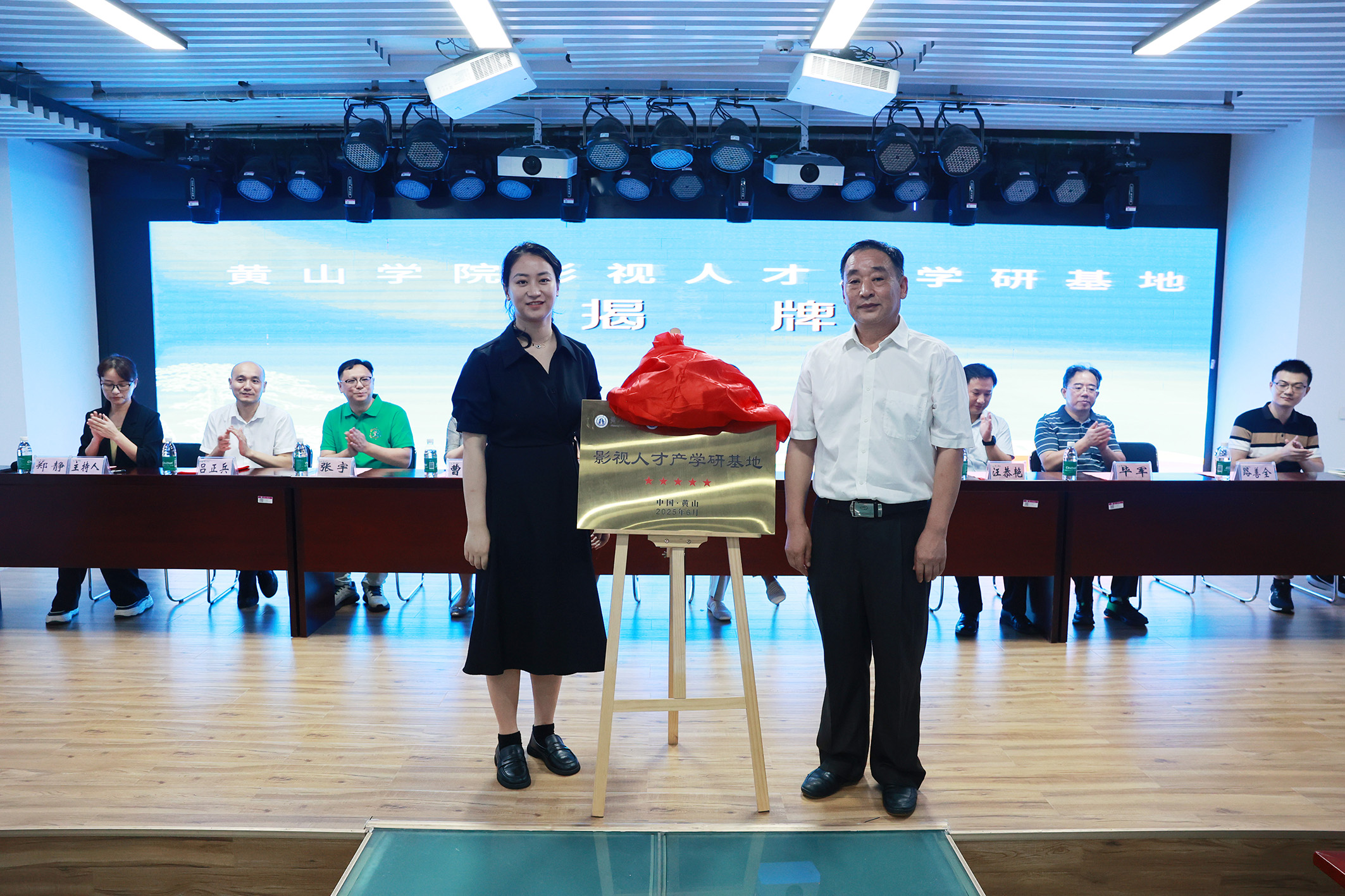 仪式上,yl7703永利官网与黄山祁迹传媒有限公司签约,“黄山学院影视人才产学研基地”揭牌,标志着校企共建实体平台的落地。