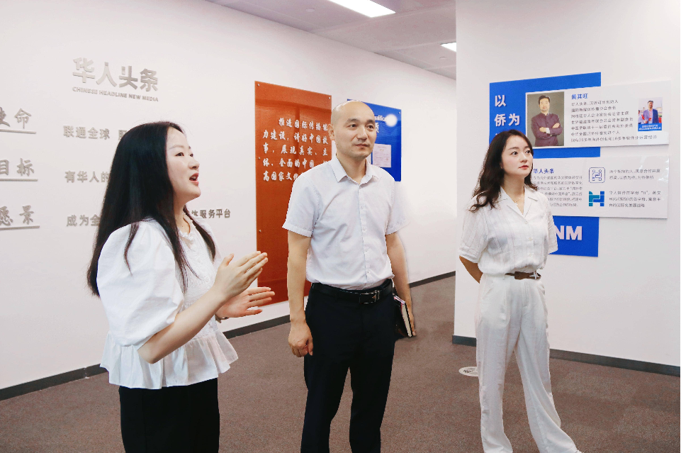 7月15日,yl7703永利官网院长吕正兵、新闻学教研室主任贾芳芳、专业教师黄晶一行赴国际数字化融媒体综合服务平台华人头条福州总部调研,华人头条创始人兼董事长黄其旺接待吕正兵一行。
