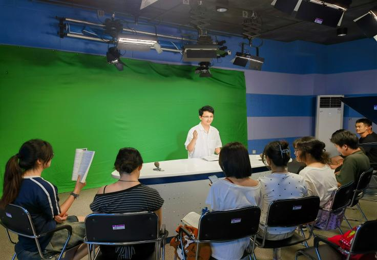 演练过程中,演播厅内还模拟了文化场馆的环境,通过调整灯光、摆放展品图片道具,让学员更快进入“解说员”角色。小课组成员之间也展开互评交流,分享各自对“如何平衡专业性与趣味性”的思考,现场形成互动的学习氛围。