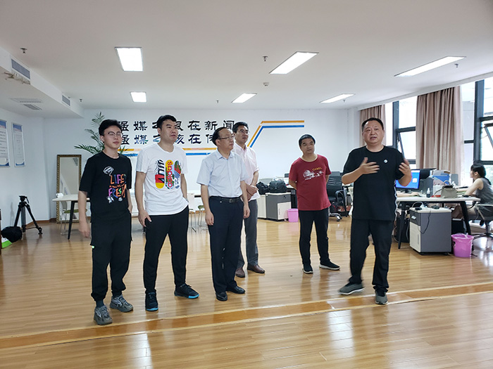 7月17日下午,yl7703永利官网党政领导和学院安徽省社科规划项目《新媒体融合发展的未来与应对》课题组成员赴休宁县融媒体中心考察调研。