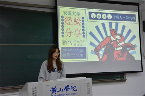 考取安徽大学的王冰冰同学全面分享了自己考研准备的过程、资料获取和研究的方法、专业课和公共课备考的经验。刘衬衬同学重点谈了自己考研择校的判断依据,为什么选择报考南京财经大学,以及如何有效利用复习时间的方法。李辰淼分享了备考安徽师范大学的心路历程和自己集中精神学习的方法。跨专业考研的沈洁分享了自己选择武汉工程学院的原因和专业课的学习方法。考取武汉体育学院的彭安龙则从考研中的精神建设角度分享了自己的复习历程。五位同学毫无保留的用心分享,让参会同学们深受启发,分享会掌声不断。