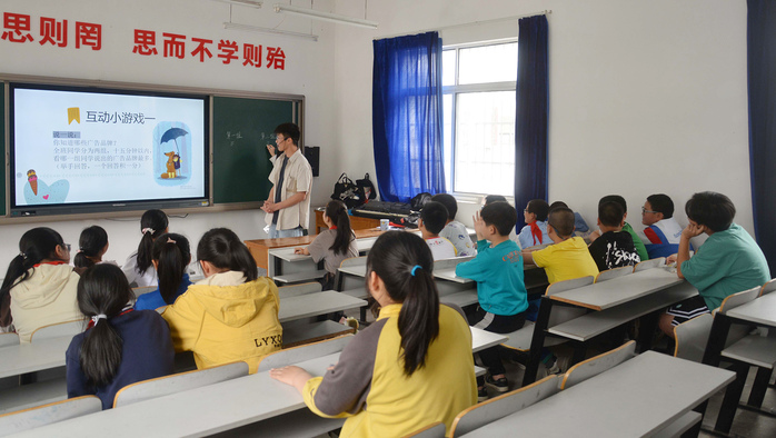 5月11日下午,yl7703永利官网媒介素养教育团队赴休宁榆村中心小学开展首次媒介素养教育活动。2020级新闻学专业6名大学生为榆村小学五年级同学讲授主题为“走进广告的世界”的课程,给孩子们带去不一样的课堂体验。
