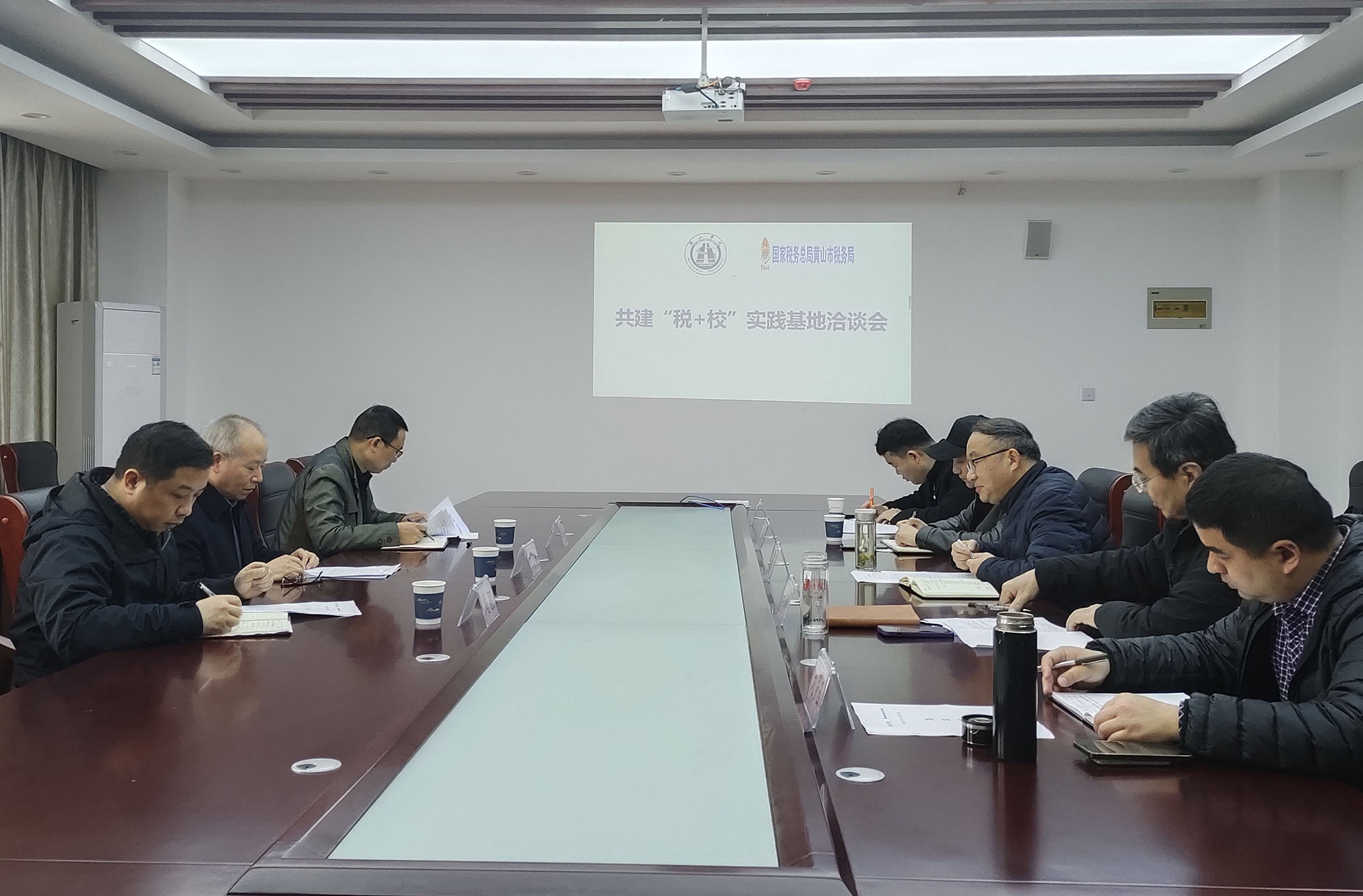 3月23日上午,黄山市税务局副局长汪森根、税收宣传中心主任胡雄飞、纳税服务中心科长周颖一行三人来yl7703永利官网就建立“税+校”实践基地事宜洽谈合作事宜。yl7703永利官网党委书记汪家庚、院长王俊峰、副院长吕正兵及教师代表参加了座谈会。