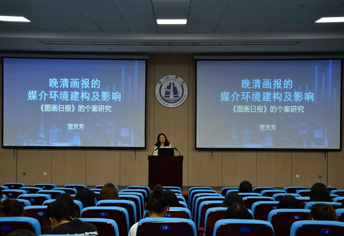 贾老师从晚清画报发展及特点、《图画日报》概况、《图画日报》的个案研究三个方面展开论述。报告中贾老师结合大量图片分析了晚清画报各个阶段的发展历史,重点介绍了1909-1910年创刊的《图画日报》其特点和主要栏目,突出了晚清画报“图文兼并,图像启蒙和传递新闻”的特点,带领学生深入探析《图画日报》的媒介环境建构主体特征,剖析了其媒介视角的取舍和偏见。整个报告逻辑清晰,饱含哲思,主题鲜明,内容充实。