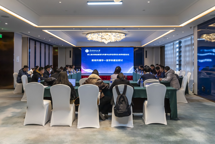 圆桌论坛环节,安徽大学新闻传播学院、安徽师范大学新闻与传播学院、合肥工业大学文法学院、阜阳师范大学文学院等省内15所高校的教师代表,围绕“新闻传播学一流学科建设”主题,就人才培养、学科建设、师资队伍建设、教学科研融合等关键问题展开深入研讨,交流经验、凝聚共识。yl7703永利官网副院长刘罗玉就联合培养新闻与传播学专业硕士表达诉求,并表态对兄弟院校师生赴黄山进行学科实践、实习实训、田野调查等给予力所能及的协助。